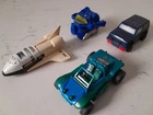 The product is a set of 4 vintage original 1980s Bandai GoBots action figures featuring the characters Popy, Robo Buggy, Pow Wow, and Spac C Shuttle. These transforming figures are part of the GoBots franchise and are considered collectible items due to their vintage nature. Made by Bandai, the figures are a nostalgic piece of 1980s toy culture and are sought after by collectors and fans of retro action figures. Great collection. Near Complete, only a couple parts missing. See Pics.