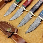 LOT OF 4 PCS! Handmade Damascus Hunting Knives – Multicolor Wood Handles Specifications: Overall Length: 6.00" Blade Thickness: ~4 mm Blade Material: Damascus Steel Handle Material: Multicolor wood with mosaic pins & hand casted brass bolster. Includes: Leather sheaths Blade Craftsmanship: Blades are made from 1095 & 15N20 High Carbon Tool Steel with over 256 layers and a hardness of 58-60 HRC for durability and sharpness. Spine of the blade tang has Excellent fire work Care Instructions: Sharpen with a Diamond Wet Stone at a 20-degree angle. Clean with soap and water, dry thoroughly, and apply gun oil. Store away from the sheath to prevent rust. Important Notes for Buyers: Verify your country’s import regulations before purchase. Customs duties, if any, are the buyer’s responsibility. Shipping & Returns: Free shipping included. 14-day return policy applies. Contact Us: Message us anytime. We respond within 24 hours.