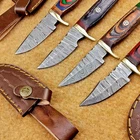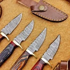 4 Pcs Damascus Blade Skinner Knives Set | 6" | Hardwood , Leather Sheath IT-850