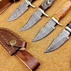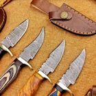 4 Pcs Damascus Blade Skinner Knives Set | 6" | Hardwood , Leather Sheath IT-853