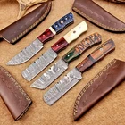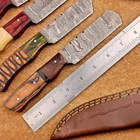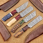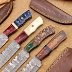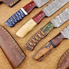 LOT OF 4 PCS! Handmade Damascus Hunting Knives , Skinner Knives Specifications: Overall Length: 8.0" Blade Thickness: ~4 mm Blade Material: Damascus Steel Handle Material: Hard wood and camel bone with brass pins mosaic pin Includes: Leather sheaths Blade Craftsmanship: Blades are made from 1095 & 15N20 High Carbon Tool Steel with over 256 layers and a hardness of 58-60 HRC for durability and sharpness. Spine of the blade tang has excellent fire work. Care Instructions: Sharpen with a Diamond Wet Stone at a 20-degree angle. Clean with soap and water, dry thoroughly, and apply gun oil. Store away from the sheath to prevent rust. Important Notes for Buyers: Verify your country’s import regulations before purchase. Customs duties, if any, are the buyer’s responsibility. Shipping & Returns: Free shipping included. 14-day return policy applies. Contact Us: Message us anytime. We respond within 24 hours.