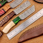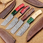 LOT OF 4 PCS! Handmade Damascus Hunting Knives , Skinner Knives Specifications: Overall Length: 8.0" Blade Thickness: ~4 mm Blade Material: Damascus Steel Handle Material: Hard wood and Resin / camel bone with brass pins mosaic pin Includes: Leather sheaths Blade Craftsmanship: Blades are made from 1095 & 15N20 High Carbon Tool Steel with over 256 layers and a hardness of 58-60 HRC for durability and sharpness. Spine of the blade tang has excellent fire work. Care Instructions: Sharpen with a Diamond Wet Stone at a 20-degree angle. Clean with soap and water, dry thoroughly, and apply gun oil. Store away from the sheath to prevent rust. Important Notes for Buyers: Verify your country’s import regulations before purchase. Customs duties, if any, are the buyer’s responsibility. Shipping & Returns: Free shipping included. 14-day return policy applies. Contact Us: Message us anytime. We respond within 24 hours.