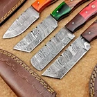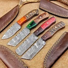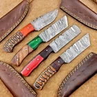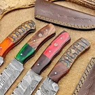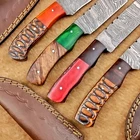 LOT OF 4 PCS! Handmade Damascus Hunting Knives , Skinner Knives Specifications: Overall Length: 8.0" Blade Thickness: ~4 mm Blade Material: Damascus Steel Handle Material: Hard wood with brass pins mosaic pin Includes: Leather sheaths Blade Craftsmanship: Blades are made from 1095 & 15N20 High Carbon Tool Steel with over 256 layers and a hardness of 58-60 HRC for durability and sharpness. Spine of the blade tang has excellent fire work. Care Instructions: Sharpen with a Diamond Wet Stone at a 20-degree angle. Clean with soap and water, dry thoroughly, and apply gun oil. Store away from the sheath to prevent rust. Important Notes for Buyers: Verify your country’s import regulations before purchase. Customs duties, if any, are the buyer’s responsibility. Shipping & Returns: Free shipping included. 14-day return policy applies. Contact Us: Message us anytime. We respond within 24 hours.