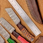 4 Pcs Damascus Blade Skinner Knives Set | 8" | Hard Wood, Leather Sheath IT-911