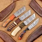 4 Pcs Damascus Blade Skinner Knives Set | 8" | Hard Wood, Leather Sheath IT-912