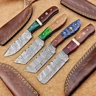 4 Pcs Damascus Blade Skinner Knives Set | 8" | Hard Wood, Leather Sheath IT-913