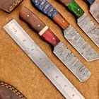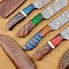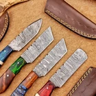 LOT OF 4 PCS! Handmade Damascus Hunting Knives , Skinner Knives Specifications: Overall Length: 8.0" Blade Thickness: ~4 mm Blade Material: Damascus Steel Handle Material: Hard wood and Camel bone with brass pins mosaic pin Includes: Leather sheaths Blade Craftsmanship: Blades are made from 1095 & 15N20 High Carbon Tool Steel with over 256 layers and a hardness of 58-60 HRC for durability and sharpness. Spine of the blade tang has excellent fire work. Care Instructions: Sharpen with a Diamond Wet Stone at a 20-degree angle. Clean with soap and water, dry thoroughly, and apply gun oil. Store away from the sheath to prevent rust. Important Notes for Buyers: Verify your country’s import regulations before purchase. Customs duties, if any, are the buyer’s responsibility. Shipping & Returns: Free shipping included. 14-day return policy applies. Contact Us: Message us anytime. We respond within 24 hours.