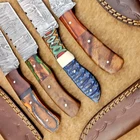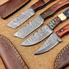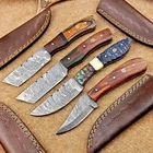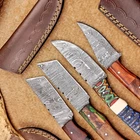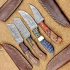 4 Pcs Damascus Blade Skinner Knives Set | 8" | Hard Wood, Leather Sheath IT-914
