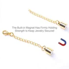 4 Pcs Magnetic Necklace Extenders Adjustable Chain with Clasps Closures Features: Lobster Clasp Magnet Extension Chain Connector Is Used To Extend Your Necklace Or Bracelet Built-in Magnets Firmly Hold Your Chain, Making Putting On The Necklace Very Easy Can Make Your Necklace Or Bracelet Longer By 10cm/4inch. Just Attach It To Your Necklace Or Even Bracelets And Open And Close The Magnet. Easy. Set Contains: 2 Gold And 2 Silver, Total Of 4 Magnet Clasps Extension Chain Jewelry Connectors Description: Description These are just what you need if your necklaces are not long enough or have trouble putting them on.They are extremely easy to attach.Either your nails are too short or too long. Or if your eyesight changes and you hate things too close. Clasps can be a pain. These definitely help.