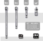 Sturdy and Durable: the extension bar set is made of hardened chrome vanadium steel, durable, not easy to rust, longer service life. Easy to Maintain and Anti-slip: The surface of the socket extension set is chrome plated, and the mirror surface is polished, corrosion resistant and easy to wipe. The anti-skid design in the middle of the socket extension bar set makes it easier to use. Improve Work Efficiency: The spring-loaded detent ball firmly locks the extension on the sockets to improve your work efficiency. Complete More Work: We also equip you with a 1/4 Inch drive Universal Joint Socket, which can help you complete more work. Package Includes: This socket extension bar set includes 3pcs 1/4-Inch Drive extension rod(2-inch, 4-inch, 6-inch) and a 1/4 Inch drive Universal Joint Socket. Our Promise: We has been committed to providing customers with high-quality products. If there is any problem with the products, We promise a lifetime warranty. Strugdeas is committed to providing you with the highest quality products and services to make your shopping experience the best it can be. we want to bring convenience and fun to you and your family. Product Advantages: ●made of hardened chrome vanadium steel and chrome-faced,Corrosion resistance, long life. ●surface chrome plated, and the mirror surface is polished, corrosion resistant and easy to wipe. ●The anti-skid design in the middle of the extension rod makes it easier to use. ●Spring-loaded detent ball firmly locks the extension on the sockets to improve your work efficiency. ●Equip you with a 1/4 Inch drive Universal Joint Socket, which can help you complete more work If you like it, don't hesitate to act! Material: Chrome vanadium steel Model: 1/4-Inch drive Lifetime Guarantee: Strugdeas products are subject to strict quality checks and provide a lifetime guarantee on our products. If there is any problem with the product during the warranty period, we will give you a full refund. Package Includes: 1PCS 1/4Inch drive 2Inch Extensions 1PCS 1/4Inch drive 4 Inch Extensions 1PCS 1/4Inch drive 6 Inch Extensions 1PCS 1/4Inch drive universal joint Socket
