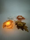 Add a touch of autumnal charm to your home with this set of four glass candle holders, perfect for tea lights. Get ready to elevate your home decor with these stylish and versatile candle holders. Please look at photos for condition. On the clear leaf there is two small flea bites as shown in photos. In good used condition.