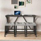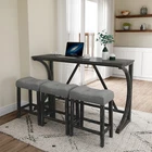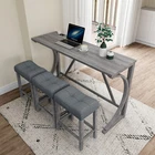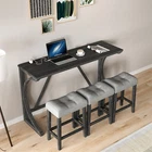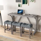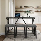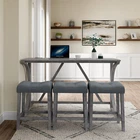 Description Product Features 1.Exquisite appearance:Industrial dining table: This bar table and chair features a high-quality imitation wood grain surface, making it an excellent addition to your kitchen, gaming room, or living room. Space saving and perfect fit: Three 18 "long x 11" wide x 24 "high bar stools can fit perfectly under the table when not in use, maximizing space while maintaining aesthetics. Foot mats not only increase stability but also prevent floor scratches. 2.Ergonomic stools and durable materials: The stools are equipped with Tactile soft fabric and curved cushions, providing comfort and relaxation even when sitting for a long time. Made of high quality MDF and high elasticity foam. In addition, solid wood and PVC veneers have scratch resistance and are easy to clean. 3.Easy to assemble: All hardwares and accessories are provided. It comes with easy-to-follow instructions. 4.Package design:The ISTA 3A packaging standard has undergone rigorous drop testing and detection, greatly avoiding the risk of product damage during later transportation Product details Table Product Size 59"*19"*36"H Inch Table material Table top:MDF Table leg:plywood+rubber wood Chair Product Size 18"*11"*24"H Inch Chair material Solid wood+High resilience foam+Linen Total net weight 70.4 Lbs Total gross weight 82 .06Lbs Notice 1. Due to lighting or monitor display, the color of the actual product may be slightly different from the image. 2. Manual measurement is used, there may be some reasonable errors. Package Includes: 1 x Bar Table 3 x Bar Stools Note: Please allow ±1/0.5'' error due to manual measurement. When viewing the color of the product on your monitor, it may differ from the actual color of the item.