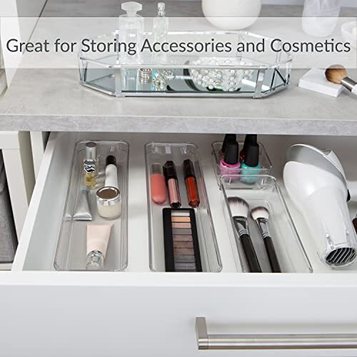 Menu 1. We require immediate payment. 2. We currently accept payment via eBay managed payments only. 3. Once payment is cleared, we will dispatch your shipment within 1-3 business days. Please refer to the "Shipping" tab for more information regarding shipping speed to your destination. 4 Piece Multipurpose Drawer Organizers | Bathroom | Vanity | Cosmetic & Jewelry Storage | Kitchen | Clear Product description Dimensions: 4 Piece Set. Large (2): 12.75" x 3.6" x 1.9", Medium: 9.1" x 3.6" x 1.9", Small: 3.6" x 3.6" x 1.9" Drawer Organizer: These are the perfect size to fit in your drawers. It helps you to keep your drawer organized. Multipurpose: It is ideal for your bathroom, office, kitchen, or any room. You can store hair accessories, jewelry, and toiletries in it. It is also good for holding small office supplies like paper clips. Clear Design: The clear design of the organizer makes finding what you need easy, and it goes with any room’s décor. Inner Lining: Each compartment has a skid resistant inner lining that protects your items and prevents them from sliding around too much when you open and close your drawer. PLEASE MESSAGE US IF YOU HAVE ANY OTHER QUESTIONS, AND MANY THANKS FOR READING ALL OF THIS. Copyright ©#. All Rights Reserved.