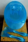 Hi There! Welcome to Brewhogger's Auction! Today I'm offering a four piece toddler sized food or snack container. This sturdy plastic oval bowl is two-tone blue in color, it has a removable lid that with a built in storage area for the matching spoon and fork. This is a great container for the mom, dad, or nanny on the go; easily store nuts, raisins, goldfish, cheerios, fruit, vegetables....perfect for the kids when traveling or place in a lunch box. The bowl is 2" high, 5" wide, 5" long and it has a slip resistant bottom. It is in excellent condition - just a few minor sur face scratches. Be sure to add me to yo ur favorites list ! *** If you have any questions, please don't hesitate to ask. ***Thanks for looking and GOOD LUCK bidding!!! ***I will be glad to combine shipping if you win more than 1 auction or buy more than 1 item in a 5 day period. ***Please check out my other auctions and items scrolling at the bottom of this listing. ***Feedback is an important part of eBay! Please remember to do your part then I'll be sure to do mine! ***PLEASE NOTE: UPS and USPS have again increased their shipping costs - it's not my fault that shipping rates are so high. They are the ones taking advantage of online commerce. I ship items as safely and as cheaply as possible unless specifically requested to do otherwise. ***PLEASE NOTE: I am not and do not represent myself to be an antique or art dealer. Anything that I list I do with good intention and try to describe to the best of my ability. On Jun-21-15 at 00:06:16 PDT, seller added the following information: Track Page Views With Auctiva's FREE Counter