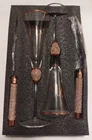 Make your special day even more memorable with this stunning 4-piece wedding set. The set includes two toasting glasses and a cake knife/server, all designed to add a touch of elegance to your celebration. The glasses are made of durable stainless steel and feature a modern design with a white diamond color that will impress your guests. The cake knife and server are also made of high-quality materials and have a sleek modern style that will complement your wedding theme. This wedding set is perfect for bridal showers, weddings, and other special occasions. Hand wash only to keep your glasses looking their best. Whether you're looking for a unique gift for the happy couple or adding a touch of sophistication to your own wedding, this set is sure to impress.