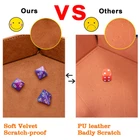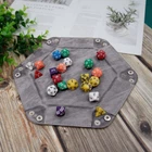 4 Pieces Dice Tray, Hexagon(Camel, Sky Blue, Black, Gray) Unique construction dice tray made of velvet and PU leather material, the colorful velvet lining and the outer leather are combined by stitching craftwork, and the dice tray with metal snaps in the 6 corners, easy to snap together and collapse. Convenient to carry The snaps design is a perfect solution for portability, you can collapse the dice tray after game and put it on any place where you are convenient to fetch, and you can also snap the dice tray together quickly when you need protect your roll surfaces, and keep dice from flying off the table. Wide applications The foldable dice tray have enough space which ont only can hold your polyhedral dice while DND game, but also can be applied to hold many items, such as watches, jewelry, keys, coins, and candies etc.. Specifications Interior material: colorful velvet Exterior material: PU leather Folding diameter: 8.7 inches Folding height: 1.6 inches Package include 4 x Dice tray Package include - come with 4 pieces hexagon dice trays in 4 different colors, including camel, sky blue, black and gray color, a perfect gift to meet your need for DND dice game Unique construction - dice tray made of velvet and PU leather material, the colorful velvet lining and the outer leather are combined by stitching craftwork, and the dice tray with metal snaps in the 6 corners, easy to snap together and collapse Practical and durable - the velvet inner part of the dice tray with soft handfeel, which can protect the dice tray from scratching by sharped or metal dices, the leather outer part of the dice tray with delicate fully PU leather texture, great physical feel and easy to clean Convenient to carry - the snaps design is a perfect solution for portability, you can collapse the dice tray after game and put it on any place where you are convenient to fetch, and you can also snap the dice tray together quickly when you need protect your roll surfaces, and keep dice from flying off the table Wide applications - the foldable dice tray have enough space which ont only can hold your polyhedral dice while DND game, but also can be applied to hold many items, such as watches, jewelry, keys, coins, and candies etc.