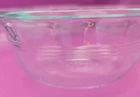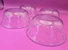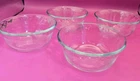 Enhance your baking and serving experience with these vintage Pyrex clear glass ramekins. The set includes four 6 oz cups, each featuring the classic three-ring banded design that adds a touch of mid-century charm to any table setting. Crafted in the United States, these ramekins boast a round shape and measure 5 inches in diameter with a height of 2 inches, perfect for showcasing your favorite desserts. These ramekins are not only dishwasher safe but also microwave safe, ensuring ease of use for both preparation and cleanup. Their fused glass construction, impressed backstamp, and Americana origin attest to their authenticity and quality. Whether for special occasions or everyday enjoyment, these cups are a delightful addition to your kitchenware collection. No visible scratches or chips. Thank you for viewing.
