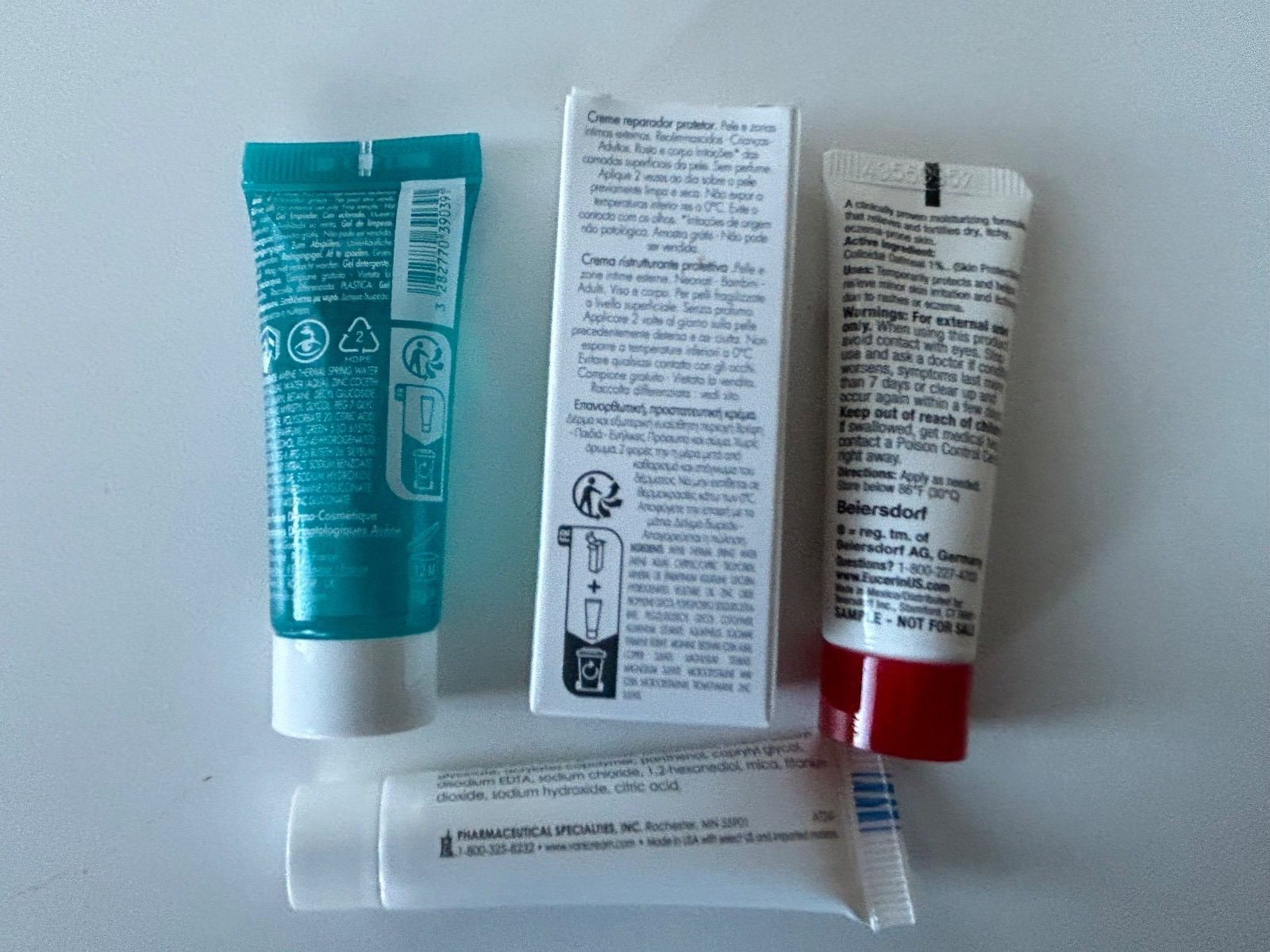 This auction is for a new Lot of 4 different dermatology travel size items: EUCERIN ECZEMA RELIEF BODY CREAM .35 oz; VANICREAM GENTLE BODY WASH .25 oz; AVENE CLEANANCE GEL .5 fl oz; and AVENE CICALFATE .1 fl oz. Everything is brand new, never used. You will receive exactly what is in the photos. I will send them all out the same day that payment is made. Good luck!!