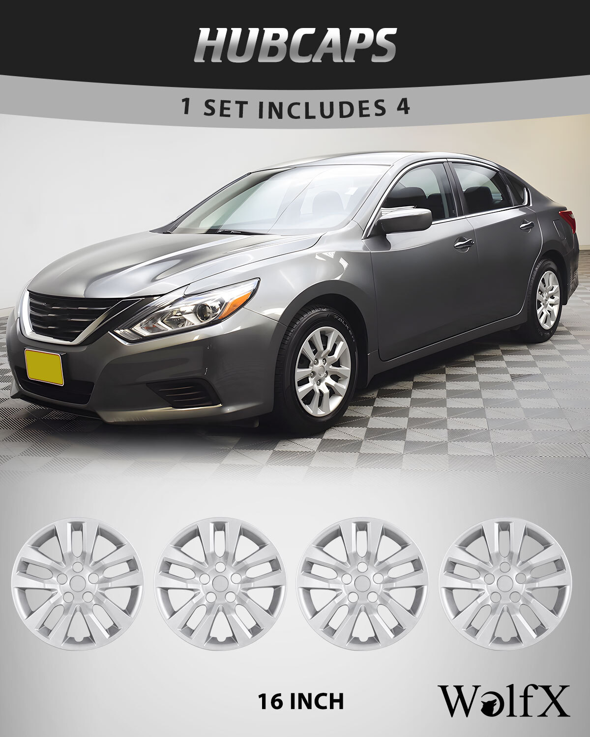 4-Piece 16" Silver Hubcap Set for 2013-2018 Nissan Altima Sedan