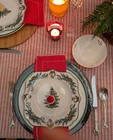 This listing includes four square salad plates in the extra fancy garland and bell motiff for Spode Christmas Tree. These are in perfect condition with the store sticker intact. They make such a lovely table stack and are a nice addition to Spode collectors.