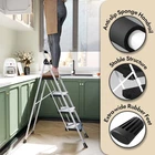 4 Step Folding Ladder, 900 lbs Load Capacity, Non-Skid Large Pedals, Handrail, Safety Lock, Sturdy Step Stool for Home, Office, Garden, Multi-Purpose, White Tested for 900 lbs Load Capacity: Crafted from high-quality plastic and iron, the sturdy ladder has successfully passed rigorous U.S. load-bearing tests, this ensures maximum safety and security for you and your family, allowing you to use it with confidence Large Non-Skid Pedals: Designed for stability, this 4 step stool features wide treads with a top pedal measuring 14.17" x 10.63" and other pedals at 14.17" x 8.66", the non-skid surface provides superior support, ensuring firm footing and preventing slips Reinforced Non-Slip Feet Covers: The folding ladder is equipped with horseshoe-shaped, anti-slip feet covers that enhance stability and protect your floors from scratches, making it a reliable choice for any surface Foldable & Versatile: This portable ladder folds down to a compact size, making it easy to store in tight spaces like under the sofa or against a wall, it's ideal for a variety of settings, including home, kitchen, bathroom, office, garage, and even outdoors, and it doubles as a handy shelf or pet stairs Durable 4-Step Design: With dimensions that cater to the needs of most American households, the step stool opens to 17.64" x 34.68" x 50.07" and folds to 17.64" x 55.55" x 2.76", and it has a maximum load capacity of 900 lbs, making it a sturdy and reliable tool for any task!