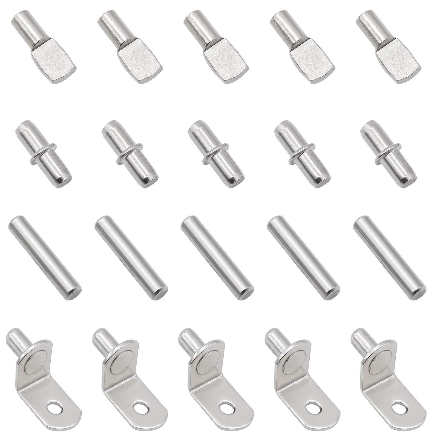 These shelf pins are a game-changer for organizing cabinets and shelves! The four versatile styles fit perfectly in 5mm or 6mm holes, and the polished nickel finish looks sleek while resisting rust. I love how sturdy they feel—no wobbling or bending, even with heavy items. The variety of shapes makes them work for different shelf types, and the smooth edges prevent snagging. With 100 pieces, I had plenty for multiple projects. Great quality at an unbeatable price—highly recommend for easy, professional-looking shelf adjustments!