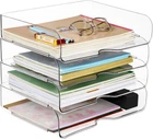✉Stylish Design - Our letter trays are made of high quality PET material, which are high transparence and durable, and it has a simple and elegant look, with upgraded U-shaped groove design, making it easier to access. ✉Stackability & No Need Assemble - Unlike other metal tray that are prone to rust, our 4 layer Letter tray requires no assembly, its stackable and separable design allows you adjust the number of trays according to their needs. ✉Space Saving - 4 Tier paper organizer storage can fit into various settings, from professional office environments to home offices. They takes up a small space in your office desk, but provides you with a large storage space. ✉Anti Nti-slip - The document tray has an uneven design to prevent container slippage, In addition, the clear tray is also easy to clean. The modern appearance that adding a stylish touch to any office or home workspace. ✉Multiple Functional - This horizontal stackable desk organizers and storage is great for school, home, and office to organize textbooks, notebooks, teachers' and students' files, documents, magazines, stationery, printer paper, etc. Product Description Production Information Color: Clear Material: High quality PET Size: Each layer: 12.99" x 9.65" x 2.95" Package Contents: 4 x Desktop File Organizer Rack Ideal for managing all kinds of letters, paper, books, invoices, postal forms, catalog sheets, paper, literature, magazines, etc. Features Durable Stackable Stable High Transparent Easy to Access Multiple-Purpose Stackable Design You can stack these document organizer trays, they will not take up extra space and save your desktop work space and keep it free of clutter. Easy to access Suitable layer heightand upgraded U-shaped groove design, making it easier to access. Multi-purpose Use our desk letter trays to keep your file folders and documents efficiently organized, and your office desktop will be more tidy.