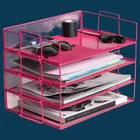 Organize your desk in style with this 4 Tier Stackable Heavy Duty Metal Desktop Letter Tray File Organizer Sorter Desk. With a solid MESH pattern and a sturdy steel material, this rectangular shaped organizer is perfect for housewarming or anniversary gifts. It can hold up to 10 pounds and recommended for letters and documents. This modern-style organizer comes in a charming pink color and measures 12"L x 9"W x 3"H. It's easy to maintain with a simple wipe of a dry cloth, and it's dishwasher safe. Plus, it's finished with a unique metal finish that adds a special touch to your office. Don't let clutter take over your workspace- get this practical and stylish desk accessory today! FAST FREE SHIPPING