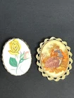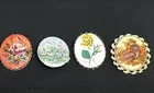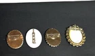 4 VINTAGE PORCELAIN PINS FIELD OF FLOWERS, PINK FLOWER WITH RAISED TEXTURED GOLD, ROSES AND VICTORIAN SITTING COUPLE SURFACE IS SCRATCHED NO BIGGER THAN 2 INCHES LOCKS ALL WORK IN GOOD CONDITION PICTURES ARE PART OF THE DESCRIPTION PLEASE CHECK OUT MY STORE, SO MANY ITEMS FROM THE PAST DESIGNER CLOTHES, SHOES & PURSES, SUNGLASSES ETC- A LOT NOT LISTED,PLEASE ASK IF LOOKING FOR A DESIGNER I DO COMBINE SHIPPING IF POSSIBLE I SHIP IMMEDIATELY UPON RECEIPT OF YOUR PAYMENT SO BE SURE TO CONTACT ME AHEAD OF TIME & LET ME KNOW IF YOU ARE STILL SHOPPING I SHIP USING USPS WITH SAME DAY OR ONE DAY HANDLING. I DO NOT MAKE MONEY ON THE SHIPPING COSTS AND IS BASED ON PRICES QUOTED AT THE USPS SITE FOR ACTUAL SHIPPING COSTS. I USE RECYCLED BOXES AND PACKING MATERIALS. ALSO NEW STURDY BOXES ITEMS WILL BE WELL PACKED, YOU WILL HAVE TRACKING NUMBER. I WILL ISSUE A REFUND WHEN EXTRA MONEY IS PAID FEEDBACK: I DO NOT LEAVE FEEDBACK UNTIL I RECEIVE YOURS. THIS IS THE ONLY WAY I KNOW YOU RECEIVED THE ITEM AND ARE HAPPY WITH MY SERVICE. IF YOU ARE NOT HAPPY PLEASE CONTACT ME BEFORE LEAVING FEEDBACK SO WE CAN WORK THE PROBLEM OUT. YOUR BUSINESS IS MUCH APPRECIATED I TRY TO DESCRIBE MY ITEMS AS HONESTLY, CLEARLY AND ACCURATELY AS POSSIBLE BUT BEAR IN MIND, I AM NOT A DEALER OR SPECIALIST. I LET YOU KNOW EXACTLY WHAT I WOULD WANT TO KNOW IF I WAS BUYING. COLORS MAY VARY SLIGHTLY DUE TO LIGHTING OR FLASH. I SOMETIME WILL ADD AN PICTURE WITH EXTRA LIGHT TO SHOW YOU THE DETAILS. IF YOU HAVE ANY QUESTIONS, OR WANT MORE PICTURES, PLEASE DON'T HESITATE TO ASK. MOST OF MY ITEMS ARE FROM OUR FAMILY HOUSES. I DO NOT CLEAN OR REPAIR ANY PIECES AND DO MY BEST TO DESCRIBE EXACTLY WHAT I SEE. IF I DO ANYTHING, I WILL LET YOU KNOW HAVE BEEN PACKED AWAY FOR YEARS. IF ANY REPAIRS HAVE BEEN DONE, IT WAS DONE BACK THEN. I WILL POINT OUT EVERYTHING THAT I NOTICE. A BUYER OF VINTAGE OBJECTS SHOULD ASSUME THAT VINTAGE AND ANTIQUE ITEMS ARE NOT ALWAYS PERFECT AND MAY SHOW SOME SIGNS OF AGE OR WEAR SUCH AS PATINA I DO MY BEST TO OFFER YOU AN EXPERIENCE THAT IS PROFESSIONAL AND QUALITY GRADED. I WOULD WANT THE SAME FOR MYSELF THEREFORE I EXPECT TO GIVE YOU JUST THE SAME. Track Page Views With Auctiva's Counter