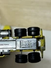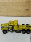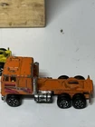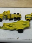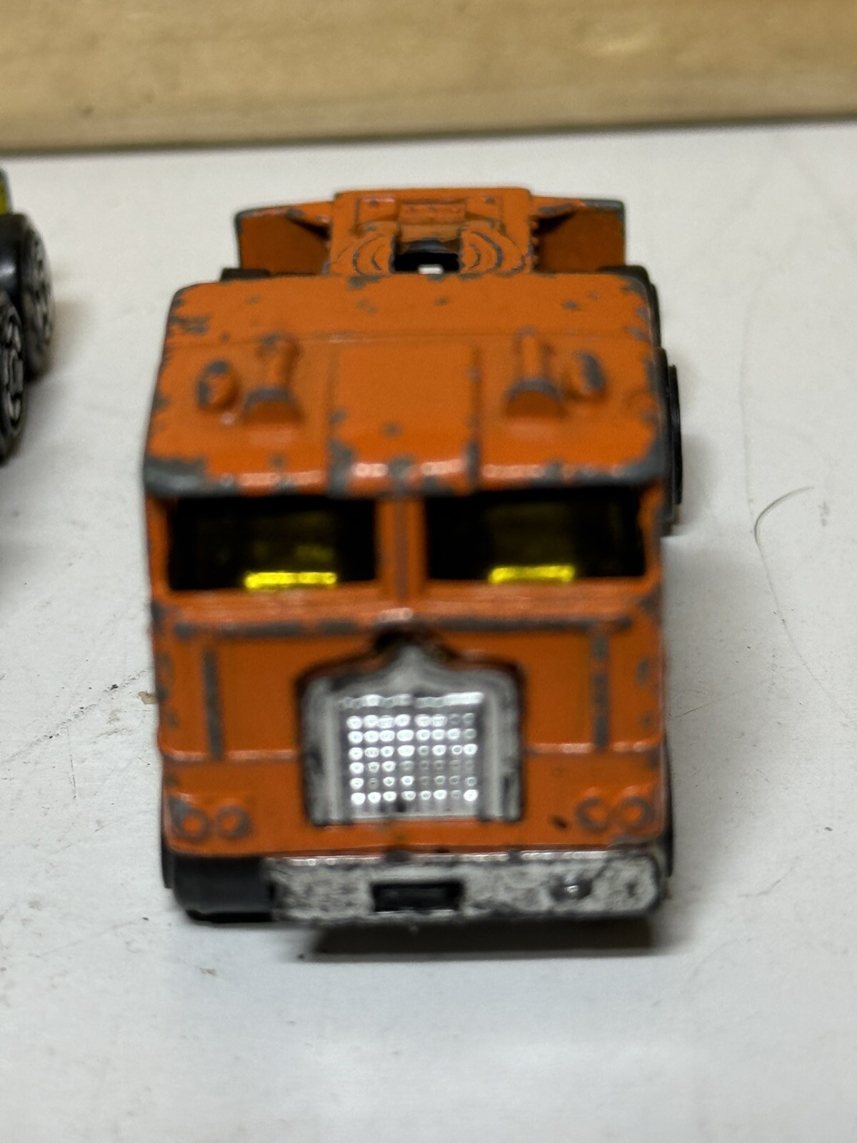 This lot includes four vintage Universal brand diecast trucks from 1978, perfect for collectors of classic toys. The trucks feature a bright orange and yellow design with a trailer, and were made in Hong Kong. They are in great shape and have not been modified. The vehicles are a 1:64 scale and are part of the Universal series. This is a must-have for any fan of vintage diecast trucks!