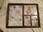 The product is a set of four vintage Angels Art Prints from Bradford Exchange, featuring angelsic themes of love, gentle touch, loving messages, and peaceful whispers. These limited edition prints are designed to bring a sense of serenity and tranquility to any space, making them a perfect addition for those who appreciate angelic imagery and messaging. The intricate details and soft colors of these prints create a soothing and calming atmosphere, making them a beautiful and meaningful decor piece for any home.