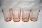 Here is a Lot of (4) Pink Depression Glass Colonial 'Knife and Fork' Water Tumblers, Produced by The Hocking Glass Co. from 1934-1936. Each glass stands 4" tall and 2-7/8" in diameter across the top rim. Pink depression glass with slight color variation as made at the factory. CONDITION: Very good to excellent, clean vintage condition free of chips or cracks. Please take the time and review all images, and if you have a minute check out my store for a few more items in this pattern. ~ TERMS AND CONDITIONS ~ THANK YOU FOR CHECKING OUT OUR LISTINGS.....PLEASE NOTE THAT WE DO NOT MAKE OFFERS....IF YOU ARE GENUINELY INTERESTED, REASONABLE OFFERS ARE CONSIDERED.....OFFERS OF MORE THAN 15% OFF ARE USUALLY NOT CONSIDERED REASONABLE..... WINNING BIDDER/BUYER TO PAY FOR USP S SHIPPING AND HANDLING .....IF YOU WISH TO ADD POSTAL INSURANCE, SIGNATURE CONFIRMATION OR WOULD LIKE YOUR ITEM DOUBLE-BOXED, PLEASE LET US KNOW BEFORE YOU COMPLETE CHECKOUT, SO THAT WE MAY ADD THESE ADDITIONAL COSTS TO YOUR INVOICE... ..ALL ITEMS ARE GUARANTEED TO BE AS DESCRIBED IN HONEST REPRESENTATION..... WE PROVIDE MANY PHOTOS AND STRIVE TO GIVE COMPLETE AND ACCURATE DESCRIPTIONS TO THE BEST OF OUR ABILITY ON ALL ITEMS.....WE ASK THAT YOU P LEASE TAKE THE TIME AND REVIEW ALL IMAGES AND READ THE DESCRIPTION CAREFULLY.....FEEDBACK IS RECIPROCAL....WE LEAVE FEEDBACK ONCE FEEDBACK HAS BEEN LEFT FOR US.