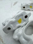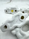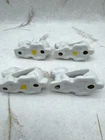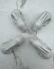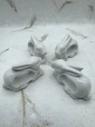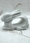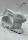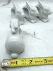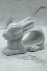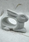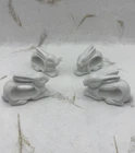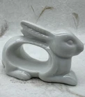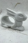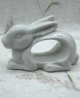 The product is a set of 4 vintage Japan white bunny rabbit napkin rings made of ceramic and porcelain, perfect for Easter or any seasonal occasion. π Each napkin ring features a solid white color and a bunny rabbit shape, measuring 3.25 inches in length, 2 inches in height, and 1.5 inches in width. π These mid-century modernism style napkin rings are washable and have a vintage charm, originating from Japan in the 1970s. π Ideal for adding a touch of farm animal and Easter-themed decor to your table setting, these unique napkin rings are a delightful addition to any collection. π Preowned vintage condition with minimal wear. No chips, cracks, or crazing noted. ππ NOTE: one rabbit has a dark spot flaw on muzzle from production techniques. ππ Set sold as is. π Please view photos for closer inspection and more details. Thanks for shopping π