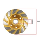 Product Description High grinding speed, long service life. Generally applicable to the grinding of marble, granite, ceramic, artificial stone and glass, etc. Suitable for the building decorated with concrete wall,marble floor. Suitable for grinding edge of granite plate, chamfering and arc grinding. Can use for DIY grinding and polishing wood, metal and mold. Used on high-speed electric grinder and pneumatic tools. Material: HHS Production process: sintering Color: Golden Applications: Suitable for grind on marble,tile, concrete,rock, etc.. Diameter:100mm/4 inch Inner hole diameter: 20mm/0.79 inch (without metal ring) Inner hole diameter: 16mm/0.63 inch (with metal ring) Thickness: 5mm/ 0.2 inch 100mm/4 inch Golden Segment Grinding Wheel. Package included 1 x 4inch Segment Grinding Wheel Note: 1. We provide clear pictures, measurements where possible. 2. The color of the actual items may slightly different from the listing images due to different displays. 3. There may be slight error due to manual measurement. Please make sure you do not mind before purchase. 4. Please leave a message before you give a bad feedback, if the products have some problems. Thank you for your kindly understanding. Shipment Payment Return & Refund Feedback Shipment All item will be carefully packaged very well with safe material and shipped to US States. Items will be sent in 2 working days,usually shipped by USPS Priority Mail. It will take about 3-5 days to US addresses. If you would like to ship by other shipment methods,please contact us.( shipping cost will be combined for multiple items you purchase at a time.) Payment Only PayPal is acceptable.It is a safe and easy payment method for buyers. Please pay in 48 hours after you win the item(s).If payment cannot be made in five days,your order(s) will be claimed as unpaid case and the item will be relisted. Return & Refund Customer satisfaction is our first priority. 30-days return is available after delivery. However, return shipping and insurance cost will be on buyers. Please email us before returning. Delivery date will be different according to UPS or USPS tracking system, so please inspect your item immediately upon arrival. Money will be return to you after the return item is sent back. We can not refund to you, if your return item is broken or damaged. Please ensure its safety. Feedback Your feedback is very important to us. If you can't leave us a "5-Star" rating and a positive feedback, please contact us without hesitation before leaving feedback. We are eager to work with our customers. We believe in communication. Give us a call or send us an email, we will make things right for our buyers. Positive feedback for our buyers will be left automatically by eBay Seller Manager Pro.