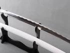 DESCRIPTION : Item number: K09 It can cut bamboo , paper , branch, or water bottles etc. It's a functional sword . Tsuba: Iron (Musashi style) Menuki & Fuchi & Kashira: Alloy (plum blossom style) Overall Length: 40.6 inch /103 cm Blade Length: 27.5 inch / 70 cm Handle Length: 10.24 inch / 26cm Blade Width: 1.26 inch / 3.2cm Blade Thickness: 0.28inch / 0.7cm Habaki & Seppa: Brass Ito/sageo: White cotton rope Rayskin: White imitate rayskin Bo-hi(blood groove): Yes Blade material: 1095 High carbon steel Tang(nakago): Full tang (2 mekugi fix the handle , very firm) Saya:Lacquered gloss wood saya Package include: 1 sword + 1 certificate Craft: Hand forged and polished with 12 procedures. Quenching , etc . The steel we use is not the normal steel with the truck or cars or other life electrics, the steel use for the blade contents much more carbon and the purity can't be comparable . * All the fittings can be replacement. we can customize wakizashi / tanto size for you . * If you need change anything about this sword, please contact us before your purchase. Tsuba & Fuchi & Kashira & Habaki Saya Additional Service About us Delivery details Tsuba & Fuchi & Kashira & Habaki Alloy Tsuba Iron Tsuba ( extra $10) Brass Set ( extral $50 ) Alloy Fuchi & Kashira Habaki TSUKA-ITO & SAGEO Tsuka-ito is the wrapping of the tsuka and sageo (下緒 or 下げ緒) is a hanging cord that is passed through the hole in the kurigata (栗形) of a Japanese sword's saya. SAMEGAWA Samegawa(鮫皮)is the ray or shark skin wrapping of the tsuka (handle/hilt). Saya Please contact us before placing an order to see if there is any stock available, as well as any additional charges. OX Horn Saya Additional Service It's free for engraving English words, Chinese Characters and Japanese Kanji , etc. You need pay extral $20-30 for engraving patterns. Hamon We can add or remove the machine-made wavy hamon for free. Bo-hi ( Blood Groove) Usually thought be used for bloodletting only. It is also used to lighten the weight of the sword. We can add or remove Bo-hi for free Sharpness Most of our blades are sharp. We can also make the blade unsharpened for free if you require. Colored Blade If you want to change to a different color blade, please contact us before purchase. Matching Swords Set If you buy one katana, we can make a matching Wakizashi or Tanto for you. The price varies from different swords. Please contact us if you need make custom matching set. About us We have our own sword-casting factory. The factory is located in Longquan, a small town with a long history of sword-casting in China. Most of the famous Swords in China are made there. Rich raw materials, skilled technology, traditional sword casting technology from generation to generation. Manual production really takes a lot of time. We will prepare most products in advance ,and arrange delivery within about a week. However, sometimes the delivery time is delayed due to weather or raw materials,etc. we hope to get your understanding. Feel free to contact us to inquire about the status of your order. Each handmade sword is unique. Our swords are great for gifts or for your own collection. Our swordsmithing master makes every sword attentively, hope you can feel our sincerity. We will also give you the best customer service, any questions please feel free to contact us. Delivery details a) Import duties, taxes and charges are not included in the item price or shipping charges . These charges are the buyer’s responsibility. b) If you do not receive the package, or the package is damaged during transportation. We'll take care of it. Please feel free to buy. c) If it is mentioned in the product description that the package includes the sword bag or sword holder , the style will be random. The sword holder or sword bag on the ebay picture is the props we use for shooting. If you really like a style, please contact us before buying. d) If you have any problem after recieve the package (wrong size, wrong style, etc.). We always provide you with the best after-sales service. Please give us a chance to help you before you give us a bad feedback . Thank you very much!