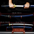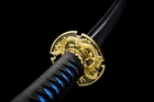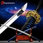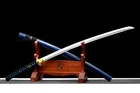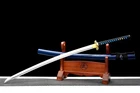 40'' New Dragon Katana 1095 Steel Battle Ready Real Sharp Japanese Samurai Sword Product Parameter : Package: 1sword + 1bag Sword style: Japanese samurai katana sword Blade material: 1095 high carbon steel Overall length: 103cm / 40.5" Handle: 26cm / 10.2'' Blade: 72cm / 28.3'' Thickness: 0.7cm / 0.28'' Width: 3.2cm / 1.26'' Blood groove: with bo-hi Nakago: Full tang , 2 mekugis fix the handle, very firm Hamon: No hamon Samegawa: Blue, prevent slippery function Ito&sageo: Japanese synthetic silk Saya: Blue lacquered wood saya Fittings: Alloy fuchi & kashira and menuki + Brass seppa&habaki Craft: Handmade sword. Traditional hand-forging, quenching, heat treatment, hand-polishing, etc. It's a real functional battle ready sharp sword. Note About us Sword Noun Explananation Delivery details Sword maintenance Note 1) We have already sent this item to the warehouse in America in advance. It's the lowest price we've ever had, and it's the lowest price on eBay . American customers can receive the packages 1-7 days after placing an order. 2) Because the item is already in the warehouse in the United States, we are sorry that we cannot add free carving service & replacement parts service for the moment. 3) We have free return service. If you don't like anything after you receive the package, we will bear the loss of return. Please feel free to buy. About us We have our own sword-casting factory. The factory is located in Longquan, a small town with a long history of sword-casting in China. Most of the famous Swords in China are made there. Rich raw materials, skilled technology, traditional sword casting technology from generation to generation. Manual production really takes a lot of time. We will prepare most products in advance,and arrange delivery within about a week. However, sometimes the delivery time is delayed due to weather or raw materials,etc. we hope to get your understanding. Feel free to contact us to inquire about the status of your order. Each handmade sword is unique. Our swords are great for gifts or for your own collection. Our swordsmithing master makes every sword attentively, hope you can feel our sincerity. We will also give you the best customer service, any questions please feel free to contact us. Sword Noun Explananation Quenching After the blade has been shaped, the sword would be quenched. We quench our swords in either water or oil. Water quenching produces a tougher edge which can also be hardened further more using clay. Blades quenched in oil are still considerably hardened and do have superior flexibility compared to a water quenched blade. Folded Steel: In the forging process , the most useful process is the folding, where the metals are forge welded, folded, and welded again, as many as 124 times(15 times is the best). The folding removes impurities and helps even out the carbon content, while the alternating layers combine hardness with ductility to greatly enhance the toughness. The less impurities, the harder and sharper the blade will be. We have done cutting tests on the blades. it can cut bamboo(young bamboo tree), grass mattings and slice paper(The blade should be tilted at 45 degrees). Clay tempered: To maximize both the cutting edge and the resilience of the sword spine, a technique of differential heat-treatment is used.The sword is painted with layers of clay before heating, providing a thin layer or none at all on the edge of the sword, ensuring quick cooling to maximize the hardening for the edge.A thicker layer of clay is applied to the rest of the blade,causing slower cooling.This creates softer,more resilient steel, allowing the blade to absorb shock without breaking. About 1095 carbon steel: The best quality of high carbon steel is at 1095, the carbon content was 1.03%, and the element contains a small amount of chromium, molybdenum, vanadium, after heat treatment can reach HRc58-60 hardness, toughness is very good, but not resistant to rust, more be applied to traditional european-style hunting knife, large cutting knife and military dao. Such as the United States during world war ii "KA - BAR" saber is in 1095 as the blade material. Kobuse: The vast majority of modern katana and wakizashi are the maru type which is the most basic, with the entire sword being composed of a single steel. The kobuse type is made using two steels, which are called hagane (edge steel) and shingane (core steel). Steel of different materials is forged and welded together to hammer the basic shape of the sword. This allows the overall blade to have a higher toughness and absorb a lot of impact. Reducing the possibility of breaking or bending to some extent. Makes the blade not only has high hardness, but also has super toughness Delivery details a) If you do not receive the package, or the package is damaged during transportation. We'll take care of it. Please feel free to buy. b) If it is mentioned in the product description that the package includes the sword bag or sword holder, the style will be random. The sword holder or sword bag on the ebay picture is the props we use for shooting. If you really like a style, please contact us before buying. c) If you have any problem after recieve the package (wrong size, wrong style, etc.). We always provide you with the best after-sales service. Please give us a chance to help you before you give us a bad feedback . Thank you very much! Sword maintenance