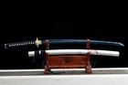 Product Parameter: Blade: High manganese steel Package: 1sword + 1random bag Overall: 103cm/ 40.6" Blade: 70cm/ 27.5'' Handle: 26 cm/ 10.24'' Width: 3.2 cm/ 1.26'' Thickness: 0.7cm/ 0.28'' Bo-hi: No blood groove Nakago: Full tang (2 mekugi fix the handle,very firm) Fittings: Alloy, koi fish Seppa/Habaki: Brass Rayskin: white, prevent slippery function Ito(handle rope): Japanese synthetic silk Saya: Lacquered wood saya with delicate koi fish pattern Craft: Fully traditional hand-forged, quench, heat treatment, hand-polished, electroplate color, etc. Usages: cutting practice, home decoration, collection, presents/ gifts, cosplay, etc. Tsuba & Fuchi & Kashira & Habaki Saya Additional Service About us Delivery details Tsuba & Fuchi & Kashira & Habaki Alloy Tsuba Iron Tsuba ( extra $10) Brass Set ( extral $50 ) Alloy Fuchi & Kashira Habaki TSUKA-ITO & SAGEO Tsuka-ito is the wrapping of the tsuka and sageo (下緒 or 下げ緒) is a hanging cord that is passed through the hole in the kurigata (栗形) of a Japanese sword's saya. SAMEGAWA Samegawa(鮫皮)is the ray or shark skin wrapping of the tsuka (handle/hilt). Saya Please contact us before placing an order to see if there is any stock available, as well as any additional charges. OX Horn Saya Additional Service It's free for engraving English words, Chinese Characters and Japanese Kanji , etc. You need pay extral $20-30 for engraving patterns. Hamon We can add or remove the machine-made wavy hamon for free. Bo-hi ( Blood Groove) Usually thought be used for bloodletting only. It is also used to lighten the weight of the sword. We can add or remove Bo-hi for free Sharpness Most of our blades are sharp. We can also make the blade unsharpened for free if you require. Colored Blade If you want to change to a different color blade, please contact us before purchase. Matching Swords Set If you buy one katana, we can make a matching Wakizashi or Tanto for you. The price varies from different swords. Please contact us if you need make custom matching set. About us We have our own sword-casting factory. The factory is located in Longquan, a small town with a long history of sword-casting in China. Most of the famous Swords in China are made there. Rich raw materials, skilled technology, traditional sword casting technology from generation to generation. Manual production really takes a lot of time. We will prepare most products in advance ,and arrange delivery within about a week. However, sometimes the delivery time is delayed due to weather or raw materials,etc. we hope to get your understanding. Feel free to contact us to inquire about the status of your order. Each handmade sword is unique. Our swords are great for gifts or for your own collection. Our swordsmithing master makes every sword attentively, hope you can feel our sincerity. We will also give you the best customer service, any questions please feel free to contact us. Delivery details a) Import duties, taxes and charges are not included in the item price or shipping charges . These charges are the buyer’s responsibility. b) If you do not receive the package, or the package is damaged during transportation. We'll take care of it. Please feel free to buy. c) If it is mentioned in the product description that the package includes the sword bag or sword holder , the style will be random. The sword holder or sword bag on the ebay picture is the props we use for shooting. If you really like a style, please contact us before buying. d) If you have any problem after recieve the package (wrong size, wrong style, etc.). We always provide you with the best after-sales service. Please give us a chance to help you before you give us a bad feedback . Thank you very much!