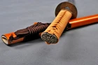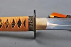 Describtion: Package: 1sword+1bag+1certificate Number: D05 Swordsmith: 劉旭 Craft: Fully handforged, shiage-tōgi polished,clay tempered,oil quenched,etc. Material: Clay tempered T10 high carbon steel Tsuba: Iron Handle: Genuine rayskin + Brass fittings Saya: Lacquered hardwood saya Overall: 103cm/40.6" Blade: 70cm/27.5'' Handle: 26 cm/10.24'' Widdth: 3.2 cm/1.26'' Thickness: 0.7cm/0.28'' Hardness(HRC): 60 Bo-hi: without blood groove Hamon: Real handmade hamon It' s a functional sword,you can use it to cut bamboo,paper,water bottles,etc. The mirror effect is great . All fittings can be replaced, please contact us before you place the order. Tsuba & Fuchi & Kashira & Habaki Saya Additional Service About us Delivery details Tsuba & Fuchi & Kashira & Habaki Alloy Tsuba Iron Tsuba ( extra $10) Brass Set ( extral $50 ) Alloy Fuchi & Kashira Habaki TSUKA-ITO & SAGEO Tsuka-ito is the wrapping of the tsuka and sageo (下緒 or 下げ緒) is a hanging cord that is passed through the hole in the kurigata (栗形) of a Japanese sword's saya. SAMEGAWA Samegawa(鮫皮)is the ray or shark skin wrapping of the tsuka (handle/hilt). Saya Please contact us before placing an order to see if there is any stock available, as well as any additional charges. OX Horn Saya Additional Service It's free for engraving English words, Chinese Characters and Japanese Kanji , etc. You need pay extral $20-30 for engraving patterns. Hamon We can add or remove the machine-made wavy hamon for free. Bo-hi ( Blood Groove) Usually thought be used for bloodletting only. It is also used to lighten the weight of the sword. We can add or remove Bo-hi for free Sharpness Most of our blades are sharp. We can also make the blade unsharpened for free if you require. Colored Blade If you want to change to a different color blade, please contact us before purchase. Matching Swords Set If you buy one katana, we can make a matching Wakizashi or Tanto for you. The price varies from different swords. Please contact us if you need make custom matching set. About us We have our own sword-casting factory. The factory is located in Longquan, a small town with a long history of sword-casting in China. Most of the famous Swords in China are made there. Rich raw materials, skilled technology, traditional sword casting technology from generation to generation. Manual production really takes a lot of time. We will prepare most products in advance ,and arrange delivery within about a week. However, sometimes the delivery time is delayed due to weather or raw materials,etc. we hope to get your understanding. Feel free to contact us to inquire about the status of your order. Each handmade sword is unique. Our swords are great for gifts or for your own collection. Our swordsmithing master makes every sword attentively, hope you can feel our sincerity. We will also give you the best customer service, any questions please feel free to contact us. Delivery details a) Import duties, taxes and charges are not included in the item price or shipping charges . These charges are the buyer’s responsibility. b) If you do not receive the package, or the package is damaged during transportation. We'll take care of it. Please feel free to buy. c) If it is mentioned in the product description that the package includes the sword bag or sword holder , the style will be random. The sword holder or sword bag on the ebay picture is the props we use for shooting. If you really like a style, please contact us before buying. d) If you have any problem after recieve the package (wrong size, wrong style, etc.). We always provide you with the best after-sales service. Please give us a chance to help you before you give us a bad feedback . Thank you very much!