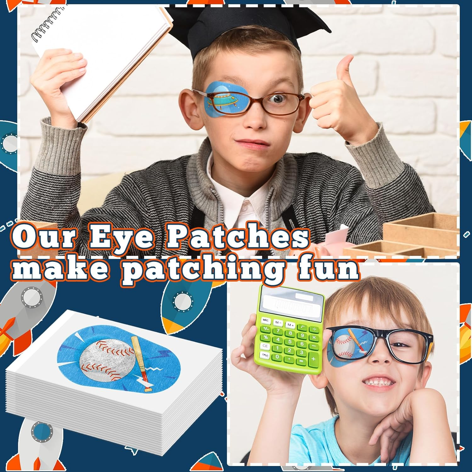 40 Pcs Kids Eye Patches for Boys Toddlers Adhesive Patches Bulk with Lazy Eye Breathable Fabric Pad Light Blocking Cute Designs Cotton Adhesive Bandages for Boys Children Enough to Use: the package includes 40 pieces of kids eyepatch for glasses in 8 different designs, 5 pieces for each style, sufficient quantity can meet your daily use and replacement needs, you can also share with your friends and family members Comfortable and Gentle: these adhesive eyeglass patches for kids are mainly made of non woven cotton material, breathable and comfortable, soft and reliable, not easy to deform or break, you can apply with confidence Appropriate Size: each right eye patch measure about 3 x 2 inches/ 75 x 50 mm, suitable for most kids, easy to put on and remove, not easy to leave sticky residue, providing nice coverage and protection Variety of Designs: coming with 8 different cartoon designs to choose from, your child will love wearing these eye patches for kids, and your child can apply it for a long time with confidence Versatile Use: whether it's for healing after an eye surgery or just protecting a small eye injury, the adhesive eye patch is suitable for kids on various occasions, such as school, sports and outdoor activities Product Description 4.45 inches x 11.02 inches x 0.63 inches. Weight: 0.63 oz Country of Origin China Package Dimensions 11.02 x 4.45 x 0.63 inches; 0.63 ounces