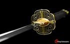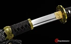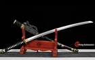 Product Parameter: NAME: 村雨丸太刀(TYQ264) OVERALL: 103cm / 40.6'' BLADE: 70cm / 27.6'' TSUKA: 26cm / 10.24'' WIDTH: 3.2cm / 1.26'' THICKNESS: 0.7cm/0.28'' HRC(Hardness): 58 CRAFT: Fully hand forged,water quenching,hand-polishing etc. MATERIAL: T10 high carbon steel SHAPE: Shinogidukuri NAKAGO: Full-tang (2 meguki fix the handle,very firm) KISSAKI: Medium (chūkissaki) TSUKA(HANDLE): Hard wood core, hineri maki SAMEGAWA: White rayskin FITTINGS: Alloy TSUBA(HAND GUARD): Alloy SEPPA/HABAKI: Brass SAYA: Shiny lacquered wooden scabbard SAGEO: Japanese cotton wrapping cord The steel we use is not the normal steel with the truck or cars or other life electrics, the steel use for the blade contents much more carbon and the purity can not be comparable. * It's a functinonal sword. After test, it can cut bamboo, A4 paper and water bottles,etc . * The sword stand is not include. Package include 1 sword + 1 bag. Manual grinding: Using the unique bright stone of Longquan Town, hand grinding, very test sword casting skills and technology, grinding out the pattern effect is special texture! Ancient quenching: Modern vacuum heat treatment can meet the hardness requirements of most swords, but the traditional quenching method has better effect, can soften the medium strip steel, and the hardness is higher. Additional Service About us Sword Noun Explananation Delivery details Sword maintenance Additional Service It's free for engraving English words, Chinese Characters and Japanese Kanji , etc. You need pay extral $20-30 for engraving patterns. Sharpness Most of our blades are sharp. We can also make the blade unsharpened for free if you require. Matching Swords Set If you buy one katana, we can make a matching Wakizashi or Tanto for you. The price varies from different swords. Please contact us if you need make custom matching set. About us We have our own sword-casting factory. The factory is located in Longquan, a small town with a long history of sword-casting in China. Most of the famous Swords in China are made there. Rich raw materials, skilled technology, traditional sword casting technology from generation to generation. Manual production really takes a lot of time. We will prepare most products in advance ,and arrange delivery within about a week. However, sometimes the delivery time is delayed due to weather or raw materials,etc. we hope to get your understanding. Feel free to contact us to inquire about the status of your order. Each handmade sword is unique. Our swords are great for gifts or for your own collection. Our swordsmithing master makes every sword attentively, hope you can feel our sincerity. We will also give you the best customer service, any questions please feel free to contact us. Sword Noun Explananation Quenching After the blade has been shaped, the sword would be quenched. We quench our swords in either water or oil. Water quenching produces a tougher edge which can also be hardened further more using clay. Blades quenched in oil are still considerably hardened and do have superior flexibility compared to a water quenched blade. Folded Steel : In the forging process , the most useful process is the folding, where the metals are forge welded, folded, and welded again, as many as 124 times(15 times is the best). The folding removes impurities and helps even out the carbon content, while the alternating layers combine hardness with ductility to greatly enhance the toughness. The less impurities, the harder and sharper the blade will be. We have done cutting tests on the blades. it can cut bamboo(young bamboo tree), grass mattings and slice paper(The blade should be tilted at 45 degrees). Clay tempered : To maximize both the cutting edge and the resilience of the sword spine, a technique of differential heat-treatment is used.The sword is painted with layers of clay before heating, providing a thin layer or none at all on the edge of the sword, ensuring quick cooling to maximize the hardening for the edge.A thicker layer of clay is applied to the rest of the blade,causing slower cooling.This creates softer,more resilient steel, allowing the blade to absorb shock without breaking. About 1095 carbon steel : The best quality of high carbon steel is at 1095, the carbon content was 1.03%, and the element contains a small amount of chromium, molybdenum, vanadium, after heat treatment can reach HRc58-60 hardness, toughness is very good, but not resistant to rust, more be applied to traditional european-style hunting knife, large cutting knife and military dao. Such as the United States during world war ii "KA - BAR" saber is in 1095 as the blade material. Kobuse : The vast majority of modern katana and wakizashi are the maru type which is the most basic, with the entire sword being composed of a single steel. The kobuse type is made using two steels, which are called hagane (edge steel) and shingane (core steel). Steel of different materials is forged and welded together to hammer the basic shape of the sword. This allows the overall blade to have a higher toughness and absorb a lot of impact. Reducing the possibility of breaking or bending to some extent. Makes the blade not only has high hardness, but also has super toughness Delivery details a) Import duties, taxes and charges are not included in the item price or shipping charges . These charges are the buyer’s responsibility. b) If you do not receive the package, or the package is damaged during transportation. We'll take care of it. Please feel free to buy. c) If it is mentioned in the product description that the package includes the sword bag or sword holder , the style will be random. The sword holder or sword bag on the ebay picture is the props we use for shooting. If you really like a style, please contact us before buying. d) If you have any problem after recieve the package (wrong size, wrong style, etc.). We always provide you with the best after-sales service. Please give us a chance to help you before you giv