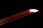 eBay Document We Can Customize Your Unique Sword CUSTOMIZE SWORD SEND FROM CHINA Blade Struture/ Length / Sori / Hamon Type / Kissaki Type / Engraving / Fittings A BOUT T HE S WORD: Fully functional and battle ready.The accessories of the sword are all authentic.It is designed by our experienced swordsmith with carefully crafting to creat a high-performance blade for real use.The sword is really cost-effective and will be your best choice to show to your friends or keep it as a collection or send it as the gift.Also,it is very suitable for training and cutting pratice. Description: Condition: Brand-New Blade Material: Damascus Steel Red Blade Overall Length: 40.5 Inch /104Cm Nagasa Length: 27.8inch/70.5cm Handle Length: 10.6 Inch / 27 Cm Blade Shape: Shinogi Zukuri Blade Edge: Hand Polished Be Razor Sharp Handle Material: Ray Skin + Hard Wooden Blade Width (Near Kissaki): 0.91inch / 2.3cm Width (Near Habaki): 1.26 Inch / 3.2Cm tsuba Material: High Quality Japanese Alloy Saya Material: High Quality Wood Saya Tsuka Ito: Chu -kissakireal ray skin covering and real navy silk wrap Bohi:Yes Mekugi:Nr. in bamboo Structure:Maru PACKAGE: 1 x Sword 1 x Black Sword Bag We Have 3 Types of Sword Stand, If You Need Them, You Can Click On The Image To Open The Link And Purchase. Send Form USA. S WORD P ICTURES Tsuba is made of Alloy material with elegant patterns. Other accessories are also made of Brass material, so there is no need to worry about fading and discoloration.The sheath is made of wood and Repeatedly polished and lacquered, with beautiful and delicate patterns.The handle(Tsuka) is made of wood, covered with real ray skin inside, wrapped with cotton rope. Sageo is a thick cotton rope, which feels better and looks more beautiful. Real katana sword: This katana is a handmade Damascus Steel sword for 100%. after more than 10 traditional processes, including annealing, tempering, quenching, and other heat treatment processes, is super sharp and durable. The sheath is made from high-quality wood and oil paint.The blades are hand polished , the blades are very sharp and can be used for real cutting swords. What you need to do is cleaning it with cloth or tissue.in Daily use, you also should pay attention to maintenance the product.Try not to touch the water. Once it touches the water, you must clean up the water. Avoid remaining moisture on the blade.Be careful do not place in a place where it is wet and in direct sunlight. And its handle is fixed by two "bamboo nails", which greatly enhances the stability of the sword.The rope of the handle is made of pure cotton and wrapped manually. It is very tight, sweat-absorbing and skid-resistant, so as not to slip out of your hand. The blade is forged and polished repeatedly using traditional and unique technology. The surface is very smooth. KATOKU - Sword Forge Copyright