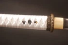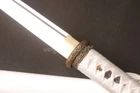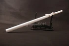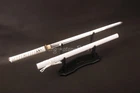 40'' White Delicate Ninjato Japanese Ninja Double Edge Straight Sword Full-tang Product Parameter: OVERALL LENGTH: 103 cm / 40.6" BLADE LENGTH: 70 cm / 27.6" TSUKA LENGTH: 26 cm / 10.2" BLADE WIDTH: 3.2 cm / 1.26'' BLADE THICKNESS: 0.7 cm / 0.27" BLADE HRC: 56 BLADE MATERIAL: 1060 carbon steel BLADE SHAPE: Kissakimorohadukuri BLADE CRAFT: fully handforged, water quenching BO-HI: Yes,with blood groove NAKAGO: Full tang SHARPNESS: ★★★☆☆ MIRROR EFFECT: ★★★★☆ TSUKA(HANDLE): hard wood core, hineri maki SAMEGAWA: White rayskin TSUKA-ITO: White synthetic silk cord FUCHI / KASHIRA / MENUKI: Alloy HABAKi / SEPPA: Brass TSUBA: Alloy SAYA: Gloosy white lacquered scabbard with white synthetic silk PACKAGE : 1 sword with saya Ninjatō : The ninjatō (忍者刀) are allegedly the preferred weapon that the Shinobi of feudal Japan carried. It is portrayed by modern ninjutsu practitioners (including Masaaki Hatsumi and Stephen K. Hayes) as the weapon of the ninja, and is prominently featured in popular culture. The ninjatō is typically depicted as being a short sword, often portrayed as having a straight blade with a square guard. Historically, there is no physical evidence for the existence of this "katana-like short sword legendarily used by ninja" before the 20th century, though it is believed that the designs demonstrated by alleged replicas are based on the design of the wakizashi or chokutō swords. Please Note: Payment Delivery Details Contact Us . Please Note: International Buyers – Please Note: a) Import duties, taxes and charges are not included in the item price or shipping charges. These charges are the buyer’s responsibility. b) Please check with your country’s customs office to determine what these additional costs will be prior to bidding/buying. Payment All payments are expected within 7 days after the last winning auction is closed. All items from unpaid auctions will be forfeited and an Unpaid Item claim will be filed against your account on eBay. Delivery Details We only ship to the confirmed address provided by Ebay. Before you pay, please make sure your address in Ebay matches the address you would like us to ship to. Buyers' Information: We strive our best to provide you the most reliable, affordable way of shipping service. However, sometimes international delivery is highly depended on the courier company and local customs/duties. If you do not receive your item on time, please contact us immediately for further assistance. Please note that we do not ship on weekends, or national holidays. If you make a payment by eCheck, it may take longer since it has to clear your bank first before the order is processed. We recommend our buyer to combine shipping. Contact Us If there is any problem, just contact us. Please contact with us before you leave feedback. We will try our best to solve the problem for you, thank you. Customer satisfaction is always the most important for us.Sometimes,you may not get our reply immediately due to the time difference among each country. However, please be assured that we’ll strive to reply you as soon as possible once we got your messages. Wish you have a very pleasant buying experience with us. .