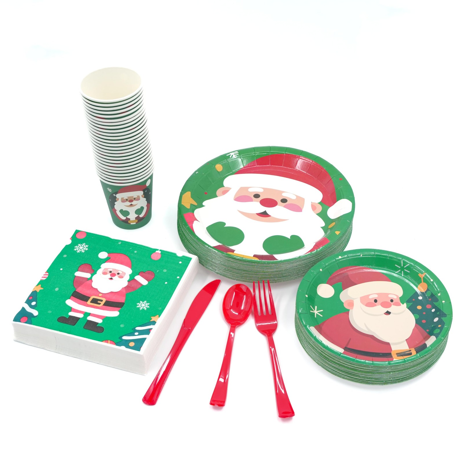 400-piece Christmas paper tableware set, disposable knives, forks, spoons, silverware, napkins, straws, Christmas plates and paper cups, can be used by 50 guests, high-end party supplies. This Christmas party plate, cup and napkin straw set contains 50 9-inch pieces (about 22.9 cm) Disposable Santa tableware, 50 7-inch pieces (about 17.3 cm) Santa Claus paper plate, 50 9-ounce Christmas paper cups, 50 6.5-inch (about 17 cm) Christmas napkins, 50 7.7-inch (about 19.5 cm) red plastic spoons, 7.3-inch (about 18.5 cm) forks and 6.8-inch (about 17.3 cm) knives and 50 red striped straws. This disposable plastic Christmas tableware set is made of strong materials. The disposable plate with a Santa Claus pattern remains intact throughout the event, allowing you to use it with peace of mind throughout the event and meeting all your needs. We have customized Christmas-style disposable plastic trays to suit your needs. These disposable and durable plates are free of bisphenol A and can be safely used to hold food. You can enjoy a Christmas celebration, barbecue party or birthday party with peace of mind because we offer disposable paper plate sets with matching straws, party cups and napkins that perfectly complement the scene decoration, allowing you to use it with peace of mind and easily enhance the party atmosphere. These Christmas disposable party plates are thoughtful gifts for relatives and friends. They can be thrown away immediately without cleaning, saving time and energy and giving you more time to share a happy party with friends and family. This Christmas party plate and cup and napkin straw set includes 50 9-inch pieces (about 22.9 cm) Santa Claus tableware for single-use, 50 7-inch (about 17.3 cm) Santa Claus paper plates, 50 9-ounce Christmas paper cups, 50 6.5-inch (about 17 cm) Christmas napkins, 50 7.7-inch (about 19.5 cm) red plastic spoons, 7.3-inch (about 18.5 cm) forks and 6.8-inch (about 17.3 cm) knives, 50 red striped straws. This disposable plastic tableware set is made of strong materials and will meet all your needs. Robust and durable: This disposable tableware set is solidly constructed and suitable for all types of parties. The disposable plate with a Santa Claus pattern remains intact throughout the entire event, allowing you to use it with peace of mind throughout the event. Health and Safety: We have made Christmas style disposable trays based on your needs. These disposable heavy duty plates are BPA-free and safe for food use. Enjoy your Christmas celebrations, barbecue parties or birthday parties with confidence because our disposable tableware sets and accompanying straws, party cups and napkins can be used with confidence. Exquisite and practical gifts: These disposable party paper plates are thoughtful gifts for relatives and friends. They are thrown away immediately without cleaning, saving time and effort, allowing you to have more time to share happy parties with your relatives and friends. Universal application: This Christmas tableware set is perfectly suitable for all kinds of festival activities, from Christmas parties, barbecue dinners to carnival birthday parties. It can perfectly match the scene decoration and easily enhance the party atmosphere.