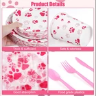 Specifications: Material: paper, plastic Size: as shown in the pictures Color: as shown in the pictures Quantity: 400 Package includes: 50 x 7-inch paper plates 50 x 9-inch paper plates 50 x 9-ounce paper cups 50 x forks 50 x knives 50 x spoons 100 x napkins Sufficient package: our set contains a total of 400 pink paw party supplies, including 50 pieces of 7-inch/17 cm plates, 50 pieces of 9-inch/22 cm plates, 100 pieces of napkins, 50 pieces of 9-ounce paper cups, 50 sets of knives, forks and spoons, sufficient to meet your party use and Premium material: our puppy paw print theme tableware is made of quality thick paper, safe and sturdy, not easy to break or leak; the paper napkins are soft and absorbent, the disposable forks, knives and spoons are made of reliable plastic; our smooth and waterproof utensils can serve you for a long time Unique design: our dog party decorations are well designed with pink dog paw elements, delicate and eye-catching; the vivid design and vibrant colors will create a nice visual enjoyment and add more energy to your puppy party Wide applications: the pink paw party supplies are great choices for various parties, such as birthday parties, pet themed parties, dog showers, picnics, home parties, camping, barbecues and more Practical gift: the plates, cups, napkins and cutlery are disposable, you can throw the puppy party supplies away directly after use without worrying about the mess or spending a lot of time on cleaning, so you can give the paw patrol plates as a practical gift to your friends or family