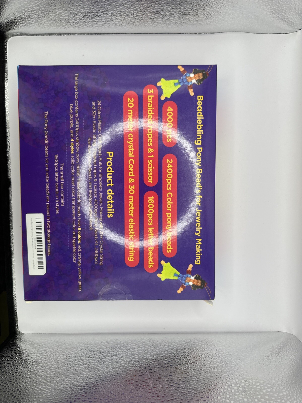 4000+ pieces of Pony Beads in assorted colors, each bead measuring 6-6.9 mm. Made of plastic, these beads are perfect for crafts and jewelry making. They come in two storage boxes for easy organization.