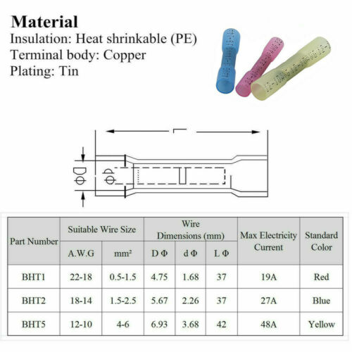 10pcs Dual Row Terminal Strip Screw Terminal Barrier Block 3A 12 Position 12.99 USD Free shipping 10pcs Dual Row Terminal Strip Screw Terminal Barrier Block 10A 12 Position 13.99 USD 0.59 USD 10pcs Dual Row Terminal Strip Screw Terminal Barrier Block 6A 12 Position 13.59 USD Free shipping 5PCS Cloth Tape Wire Electrical Wiring Harness Car Auto Suv Truck 9-19-25-38*15M 6.59 USD Free shipping 260X Heat Shrink Ring Terminals #10 1/4" 3/8" 5/16" Stud Eyelet - Marine Wire 25.99 USD Free shipping 180Pcs Heat Shrink Electrical 22-18 AWG Solder Seal Wire Connector Terminal Kit 19.99 USD 0.99 USD Heat Shrink Ring Terminals Copper Wire Crimp Connector Red+Blue+Yellow #10-5/16 35.99 USD Free shipping 24 Packs Large MAXI / APX Blade Fuse Assortment Auto Car Truck SUV AMP FUSES Kit 16.99 USD Free shipping 24 Pack Large MAXI / APX Blade Fuse Assortment Auto Car Truck SUV AMP FUSES Kit 15.99 USD Free shipping 90X 10-100A Copper Battery Cable Connector Terminal Open Lugs Wire Terminals OT 17.99 USD 0.99 USD 5Ft 1/8~1Dual-Wall Adhesive Glue Lined Heat Shrink Tube 3:1Ratio Black/Red/Clear 5.99 USD Free shipping 5-10pcs Tinned Copper Cable Lug Ring Terminals Welding Battery Marine Cable Wire 7.99 USD Free shipping 45pcs Heat Shrink Tube 3:1 Ratio Marine Grade Dual-Wall Adhesive Glue Lined 12.99 USD Free shipping 500X Waterproof Heat Shrink 3:1 Solder Seal Sleeve Butt Terminals Wire Connector 45.99 USD Free shipping 26-12 AWG Heat Shrink Butt Wire Splice Connectors Crimp Terminals 400/300/200pcs 6.59 USD Free shipping 500PCS Solder Seal Sleeve Heat Shrink Butt Wire Connectors Terminals Waterproof 8.99 USD Free shipping 1/8"- 1" Clear 3:1 Heat Shrink Tubing Glue Lined Marine Grade Waterproof 5-20Ft 7.16 USD Free shipping 328Ft(100M) 1/4"-1"Heat Shrink Tubing 3:1 Adhesive Lined Marine Lined Grade 75.99 USD Free shipping 270pcs Heat Shrink Wire Connectors Assortment Crimp Terminals Marine Case Kit 16.99 USD 1.99 USD 10x Wire Connector Gauge 4/0-5/16'' Battery Cable Ends Lugs Copper Ring Terminal 15.99 USD Free shipping 200Pcs Insulated Female & Male Bullet Butt Connector wire Crimp Terminals New 9.99 USD 1.99 USD 10x Wire Connector Gauge 2/0-5/16'' Battery Cable Ends Lugs Copper Ring Terminal 12.59 USD Free shipping 260Pcs Insulated Female & Male Bullet Butt Connector wire Crimp Terminals New 9.99 USD 1.99 USD 480 pcs Heat Shrink Wire Connectors Assortment Crimp Terminals Marine Case Kit 18.59 USD 1.99 USD 100Pcs Heat Shrink Bullet Female Male Wire 10-22WAG Connector Crimp Terminal Kit 9.99 USD 1.99 USD 24 Pack Large MAXI / APX Blade Fuse Assortment Auto Car Truck SUV AMP FUSES Kit 15.99 USD Free shipping 90X 10-100A Copper Battery Cable Connector Terminal Open Lugs Wire Terminals OT 17.99 USD 0.99 USD 5x Electric Chain Saw Chain For 550W Mini Electric Chainsaw Woodwork Wood Cutter 18.99 USD Free shipping 10x Wire Connector Gauge 2/0-1/4'' Battery Cable Ends Lugs Copper Ring Terminal 12.59 USD Free shipping 10Pc Wire Connector Gauge 2/0-3/8'' Battery Cable Ends Lugs Copper Ring Terminal 12.59 USD Free shipping Heat Shrink Wire Connector DIY Kit Waterproof Marine Automotive Terminals 500pcs 35.98 USD 1.99 USD 10Pc Wire Connector Gauge 2/0-1/2'' Battery Cable Ends Lugs Copper Ring Terminal 11.99 USD Free shipping (10Pcs) 1/0 AWG Gauge Copper Lugs w/ RED & BLACK Heat Shrink Ring Terminals 14.58 USD 0.99 USD 10PCS 1/0 Gauge 3/8" Hole Copper Ring Terminal Lug Battery Connector US 13.99 USD Free shipping 60PCS Insulated 22-10 AWG T-Taps Quick Splice Wire Terminal Connectors Combo Kit 6.99 USD Free shipping 10x Wire Connector Gauge 3/0-5/16'' Battery Cable Ends Lugs Copper Ring Terminal 13.59 USD Free shipping Product Description 400/300/200pcs 22-12 AWG Heat Shrink Butt Wire Splice Connectors Crimp Terminals Product Description Features: 100% brand new and high quality. Guaranteed to hold the strong crimps. Standard crimp and then seal heat shrink butt connectors. Allows visual inspection, prevents corrosion, and provided a waterproof seal. For best results use a hot air gun until it reduces in size and the adhesive flows, filling gaps within the terminal. Specification: Quantity: 50/100/200/250/300pcs (Selectable) Color: Red/Blue/Yellow(Selectable) Material: PE+Copper Red connectors: Suits cable/ wire sizes 0.5-1.0mm2 22-18 GA Blue connectors:Suits cable/ wire sizes 1.5-2.5mm2 16-14 GA Black connector: Suits cable/ wire sizes 14-12 GA Package Included: (The items you select) 50/100/200/250/300pcs Heat Shrink Butt Wire Crimp Connector How to Use: 1. Insert the two wires to the right size connector. 2. Crimp the metal part in the middle of the butt connector by pliers. 3. Apply heat to the two end of the connector to make it tighten up the wire. Note: Please allow 1-5mm errors due to manual measurement. Item color displayed in photos may be showing slightly different on your computer monitor since monitors are not calibrated same. powered by