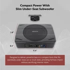 DEEP BASS PERFORMANCE: Delivers 400W peak power with an 8" subwoofer for rich, immersive low frequencies in your car or truck audio system. SPACE-SAVING DESIGN: Slim 2.8" profile fits under most vehicle seats, maximizing space while providing powerful bass for small cars, trucks, or SUVs. BUILT-IN AMPLIFIER: Integrated amp simplifies setup, with high-level inputs and auto turn-on technology, plus adjustable controls for bass, phase, and gain. EASY INSTALLATION: Includes mounting hardware and remote bass knob for quick setup; compatible with factory or aftermarket audio systems. DURABLE CONSTRUCTION: Cast aluminum enclosure helps dissipate heat and keeps the subwoofer cool, ensuring long-lasting, reliable performance. The Rockville SS8P 400W 8" Slim Under-Seat Active Subwoofer brings powerful, deep bass to your car or truck audio system without sacrificing space. Designed for vehicle owners seeking high-quality sound, this compact subwoofer fits under most seats, making it ideal for small cars, trucks, or SUVs. Its built-in amplifier and adjustable controls deliver tailored audio performance, perfect for music lovers and daily commuters. Powerful Audio: 400W peak power with an 8" subwoofer produces rich, low-frequency sound for an immersive listening experience. Compact Fit: Slim design saves trunk space, fitting seamlessly under seats in various vehicle types. Simple Setup: Built-in amplifier and included wiring kit make installation straightforward, compatible with most car audio systems. Customizable Sound: Adjustable bass, phase, and gain controls allow precise tuning to match your audio preferences. Reliable Build: High-quality materials withstand the demands of daily driving, ensuring consistent performance. Whether you're boosting your music for road trips or enhancing your commute, the Rockville SS8P delivers professional-grade audio in a compact, easy-to-install package.