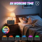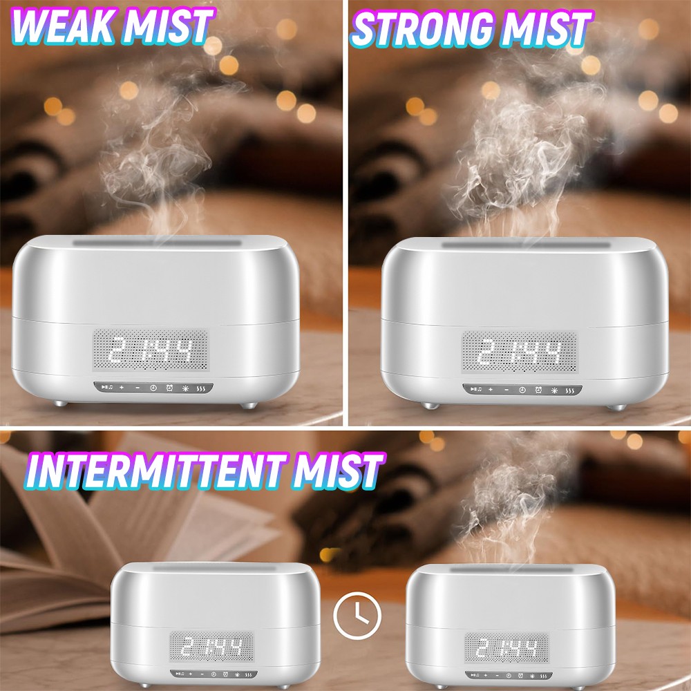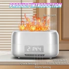 Features: Aroma & Humidification Dual Benefits: Adopts atomization technology to release fine water mist. Simply add a few drops of your favorite essential oils to the mist, which spreads a pleasant fragrance while maintaining air humidity. It brings a fresh and relaxing atmosphere to your room or office. Simulated Flame & 3 Light Modes: Features a realistic simulated flame effect—light blends with mist to create a pulsating "burning" visual, eliminating safety risks of real flames. It offers 3 light options: single-color flame light, single 7-color light, and flame + 7-color light. The warm glow can soothe your mood and serve as a night light at night. All-in-One Functional Design: Beyond a diffuser, it integrates multiple practical functions: Bluetooth audio (connect your device to play music), a clock, and an alarm clock. This multi-purpose design meets your diverse daily needs for relaxation, time management, and entertainment. Water-Shortage Auto Power-Off: Equipped with a smart safety protection function—once the water in the tank runs out, the diffuser automatically shuts off to prevent dry burning. After filling the water tank, it can run continuously for 8-10 hours, ensuring safe and worry-free use for you and your family. Customizable Timer Settings: Supports 1H/3H/6H timer modes, allowing you to set the running time according to your needs. Combined with the auto power-off function when water is low, it helps save energy and avoid unnecessary power consumption. Specifications: Material: ABS + PP Working Voltage: 24V Working Current: 650mA Rated Voltage: 100-240V Operating Power: 15W Mist Output: 25ML/H Water Tank Capacity: 400ML Light Modes: Single-Color Flame Light, Single 7-Color Light, Flame + 7-Color Light Operating Modes: 1H/3H/6H Timer, Auto Power-Off (Water Shortage) Additional Functions: Bluetooth Audio, Clock, Alarm Clock Effective Coverage Area: 10㎡ Package Included: 1 x Aroma Diffuser 1 x Remote Control 1 x US-Standard Charger 1 x User Manual