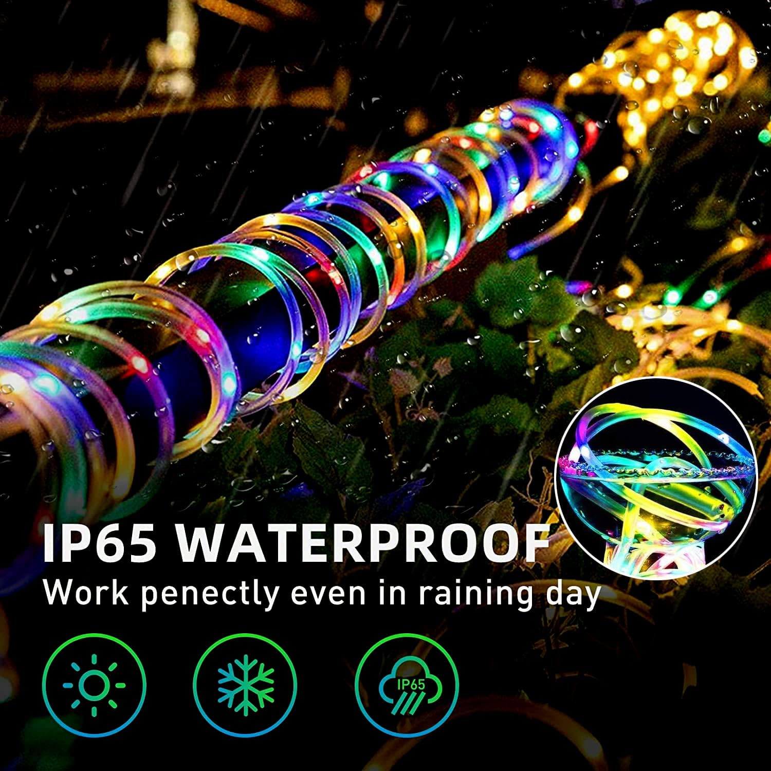 【Perfect Decorating Camping Tent String Light】This 40 ft new version decorative Camping Tent Light features colorful light, 8 flashing modes, 10 brightness levels and timer functions by remote control. Different lighting modes give you a different viewing experience, make your campsite look fun and stand out from the crowd, and also locate your tent in the dark 【Durable and Waterproof】Our camping string light made from PVC coated copper wire, which is encased in a plastic sleeve that protects the lights, waterproof and adds a great deal to their durability, as well as making the lights tangle-resistant. No need to worry about bad weather or power during outdoor camping 【Tent Light DIY Design】Come with everything you need to attach it to your tent. It has 20 velcro type wraps, 20 zip ties and 10 transparent clip, add the bendable and flexible light tube, you can DIY different light shapes as you like to create a fancy camping, trampoline atmosphere and wonderful decorative light show. Extra drawstring bag, so you can stroage pack all in one place. 【Perfect for Outdoor Indoor】Thanks to the IP67 waterproof rating of the rope lights, and the IP44 rating of the battery box, You can install or use this led rope light in any season (even in snowy or rainy weather), It offer a warm, joyful, fun and festival ambiance on birthday party, wedding, camping trip, fence or garden 【1 × Tent Decorative Light】These portable and reliable camping tent rope light are powered by 3 AA batteries (no included), which is portable and reliable. Our string light can be used without a plug to keep your tent bright all night long. this led string light are total 40ft, so it only suitable for less than 6 person tent. but if your tent is quite large (Larger than 8 person), it is recommended to purchase two or three tent lights to use in combination. Product Description Camping Tent String Lights Enhance your camping experience with our versatile and durable string lights. Designed for both indoor and outdoor use, these lights offer customizable lighting modes and easy installation. Portable and Reliable Suitable for any shape camping tent This led string light are total 40ft, so it only suitable for less than 6 person tent. Powered by 3 AA batteries (no included) IP65 Waterproof & Flexible & Foldable Rope Lights The video showcases the product in use. The video guides you through product setup. The video compares multiple products. The video shows the product being unpacked. camping string light Merchant Video The Rope lights create a warm, joyful, and festival atmosphere for decorative passage, garden, yard, gate, Patio, lawn, fence, Bedroom, porch, roof, Christmas tree, wedding, Pathways, Landscape, illuminate deck stairs, Crown Molding, Boat, RV, Camping, holiday, party, etc