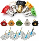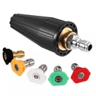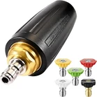 Product Feature: 🌞 Creates a powerful jet of water. The water with high flow rate can clean heavily soiled areas quickly, easily and efficiently. 🌞 Ideal for cleaning heavily soiled bricks and large amounts of dirty. 🌞 Max. pressure: 207Bar 4,000 PSI 100℃ 212Β°F. 🌞 Turbo nozzle cleans up to 40% faster than standard nozzles. 🌞 Fits most brands connect to ¼” fittings of pressure washer wand for an intense clean. 🌞 Caution: Thread seal tape or glue should be applied on 1/4” quick-connect plug to avoid leakage before usage. Product Specification: Type Pressure Washer Turbo Nozzle Color Black Material Brass & Stainless Steel, Rubber Protective Sleeve Max Working Pressure 4000 PSI Connection Types 1/4" BSP, Quick Connect Package Included: 🎁 1-10 x Copper turbo nozzle with 1/4" female pipe thread 🎁 1-10 x Quick disconnect plug Buyer Note: If you are satisfied with our service, we appreciate you leaving us a positive feedback and 5 star rating review! Your opinion is important to the success of our business. If you are not satisfied with the product or have not received the product for more than 35 days, please contact us to resolve, we will do our best to solve. We are sure to come up with a satisfactory solution. Please contact us first before leaving cold feedback or good feedback of 1-3 stars and opening the case. We'll do our best to solve your problem. Because we believe that everything can be solved through communication. Thank you very much!